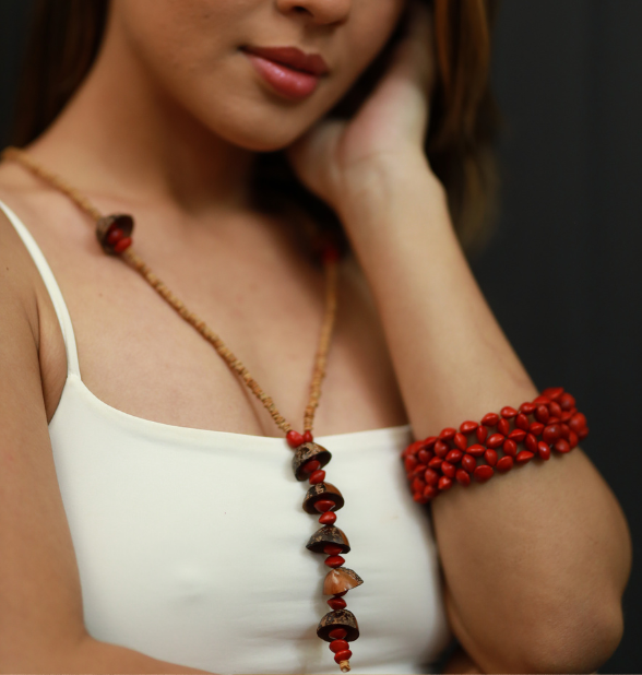 Feitas com sementes cuidadosamente selecionadas da Flona do Tapajós e Arapiuns, nossas biojoias são mais do que adornos; são manifestações autênticas da exuberância da região.